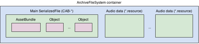 The AssetBundle file is an archive that contains multiple files internally. The structure of this archive can change slightly depending on if it is an AssetBundle or a SceneA Scene contains the environments and menus of your game. Think of each unique Scene file as a unique level. In each Scene, you place your environments, obstacles, and decorations, essentially designing and building your game in pieces. More info
