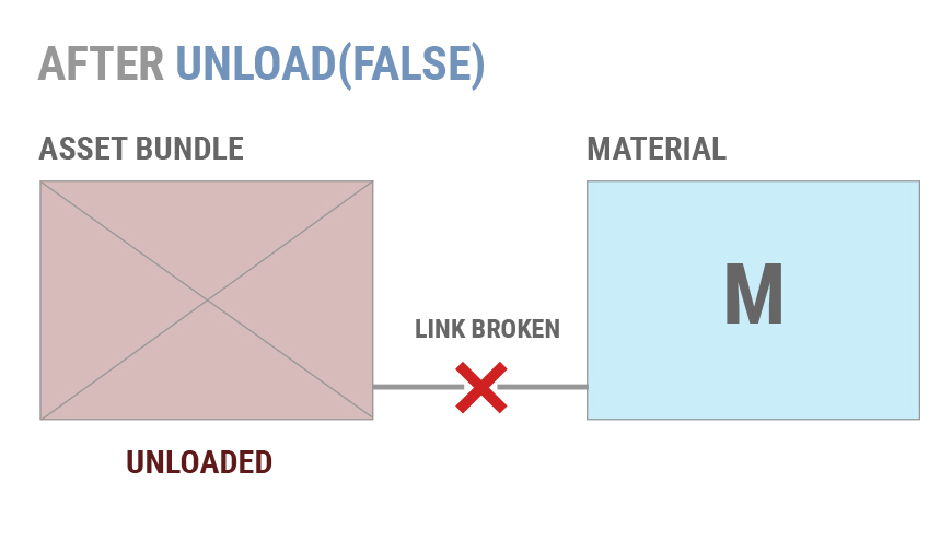 Let’s assume Material M is loaded from AssetBundle AB as shown below.