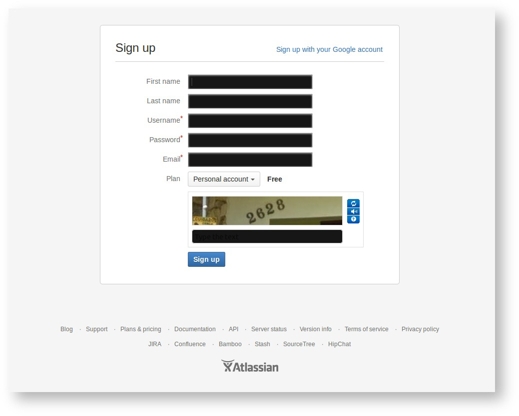If you don’t want to make a new account, Bitbucket supports OpenID, which will let you log in with your Google, Facebook, Twitter, or GitHub account.