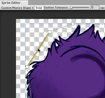 See in Glossary Editor’s Custom Physics Shape allows you to edit a Sprite’s Physics Shape, which defines the initial shape of the Sprite’s Collider 2D MeshThe main graphics primitive of Unity. Meshes make up a large part of your 3D worlds. Unity supports triangulated or Quadrangulated polygon meshes. Nurbs, Nurms, Subdiv surfaces must be converted to polygons. More info