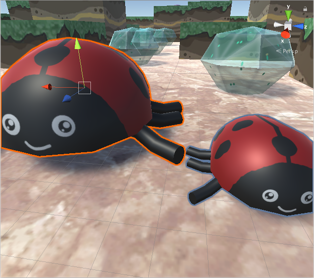 | Selection Outline | Check Selection Outline to display selected GameObjects with a colored outline, and their children with a different colored outline. By default, Unity highlights the selected GameObject in orange, and child GameObjects in blue. NOTE: This option is only available in the Scene view Gizmos menu; you cannot enable it in the Game view Gizmos menu. See Selection Outline and Selection Wire, below, for images and further information. |