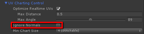 In the following example, Optimize Realtime UVs is disabled, to demonstrate the effect of Ignore Normals in isolation.