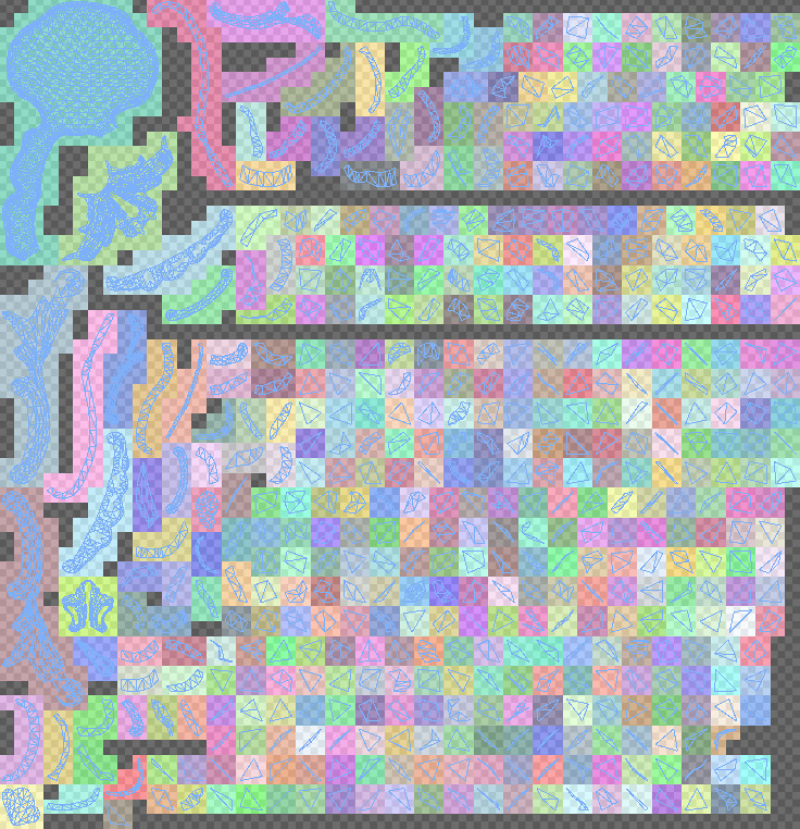 block of its own regardless of its size. The image below shows a subsection of the UVs: