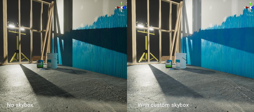 See in Glossary Material instead of default Procedural Skybox and adjust intensity. The following image shows how lighting can change in the Scene with and without Environment Lighting, and provide softer results. The settings for light sources are the same in both Scenes. Unity provides several custom HDRIhigh dynamic range image