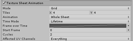 A particle’s graphic need not be a still image. This module lets you treat the Texture as a grid of separate sub-images that can be played back as frames of animation.