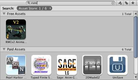 The Project Browser’s search can also be applied to assets available from the Unity Asset StoreA growing library of free and commercial assets created by Unity and members of the community. Offers a wide variety of assets, from textures, models and animations to whole Project examples, tutorials and Editor extensions. More info