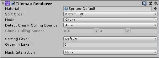 See in Glossary. Unity creates Tilemaps with the Tilemap Renderer attached by default. The Tilemap Renderer can: