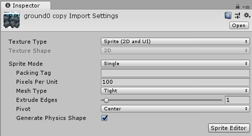 See in Glossary for use in an Isometric Tilemap, use the following recommended settings. For further information about each setting, refer to the documentation on Texture Type: Sprite (2D and UI).