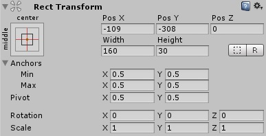 When all the anchor handles are together the fields displayed are Pos X, Pos Y, Width and Height. The Pos X and Pos Y values indicate the position of the pivot relative to the anchors.