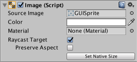 can be applied to the Image component under the Target Graphic field, and its colour can be set in the Color field. A material can also be applied to the Image component. The Image Type field defines how the applied sprite will appear, the options are: