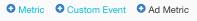 3. Add Metrics, Custom Events, and Ad Metrics to the report by clicking the + buttons next to the desired type of data. (The Ad Metrics option is disabled for projects not using Unity Ads.)