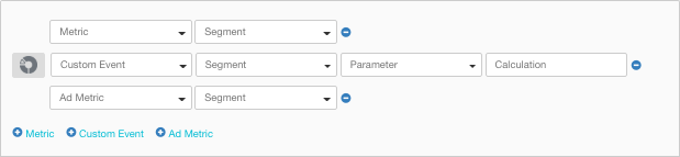 When you add a Metric or Ad Metric to the chart, you must set the name and can choose a data SegmentSegments are subsets of your player base, split apart by key differentiators. Viewing metrics and events by segment can reveal differences in-game behavior between different groups. More info