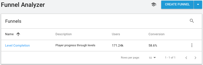 Funnels help you track whether players make it through linear sequences in your game. A funnel reveals what percentage of your players make it through each step of the sequence as well as the sequence as a whole. Common sequences to track with a funnel include: