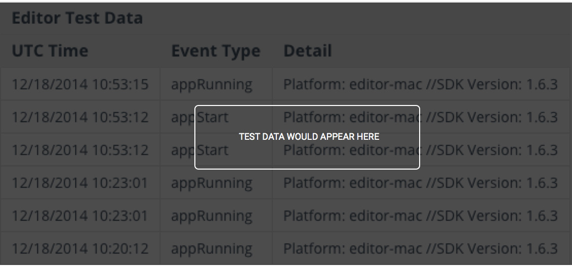 To send test Monetization data to our servers and validate your integration, trigger a purchase during Editor Play mode. If integration is successful, your test data will display in the table below.