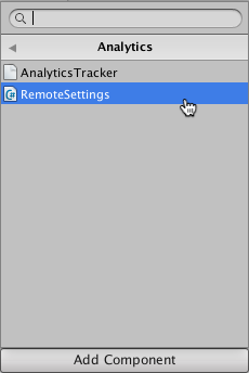 6. Click Add Component to add the Remote Settings component to the GameObject.