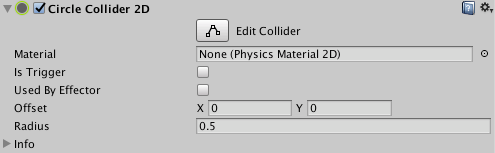 Used by Effector Check this if you want the Circle Collider 2D to be used by an attached Effector 2D.