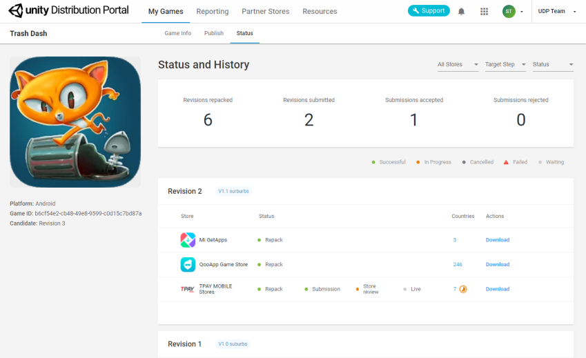 | Version code | This field is only displayed once you’ve uploaded your game to UDP. |