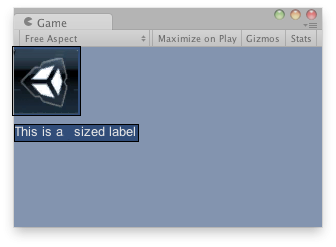 void OnGUI() { if (!tex) { Debug.LogError("Missing texture, assign a texture in the inspector"); } GUILayout.Label(tex); GUILayout.Label("This is an sized label"); } }