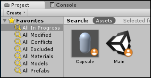 For Prefabs, the In-Progress badge is also visible in two locations in the Unity Editor:
