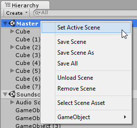| Set Active Scene | This allows you to specify which scene new Game Objects are created/instantiated in. There must always be one scene marked as the active scene |