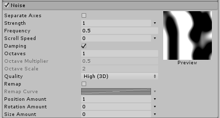 For maximum control over the noise, you can enable the Separate Axes option. This allows you to control the strength and remapping on each axis independently.