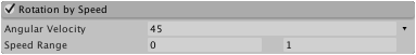 The rotation of a particle can be set here to change according to its speed in distance units per second.