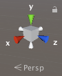 You can also toggle Perspective on and off. This changes the projection mode of the Scene view between Perspective and Orthographic (sometimes called “isometric”). To do this, click the cube in the centre of the Scene Gizmo, or the text below it. The Orthographic view has no perspective, and is useful in combination with clicking one of the conical axis arms to get a front, top or side elevation.