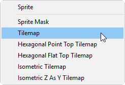 A Tilemap GameObject is then created and added to the Hierarchy as a child of the parent Grid GameObject, even if the sibling Tilemap GameObject was orignially selected.
