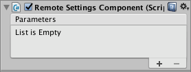 See in Glossary without writing any code. The Remote Settings component is part of the Remote Settings plug-inA set of code created outside of Unity that creates functionality in Unity. There are two kinds of plug-ins you can use in Unity: Managed plug-ins (managed .NET assemblies created with tools like Visual Studio) and Native plug-ins (platform-specific native code libraries). More info