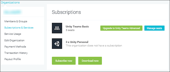 Manage team members in the Organizations page of the Unity ID website. To manage team members:
