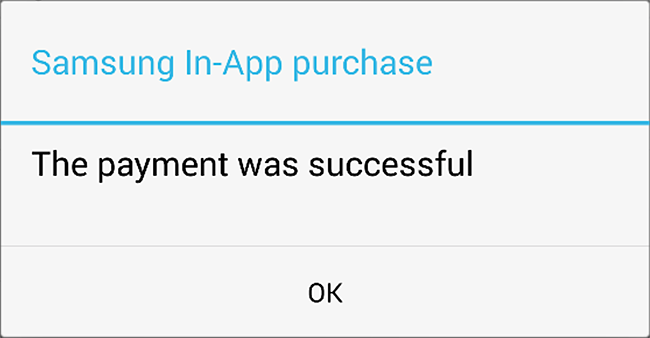 1. Modify the app’s Unity IAP integration, adding the following line after creating the ConfigurationBuilder instance: builder.Configure<ISamsungAppsConfiguration>().SetMode(SamsungAppsMode.AlwaysSucceed); // TESTING: auto-approves all transactions by Samsung. You can also configure this to fail all transactions via the SamsungAppsMode.AlwaysFail enumeration, enabling you to test all your error code.