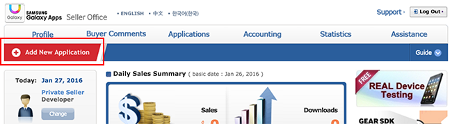 Register the Android application with the Samsung Galaxy Apps Seller Office.