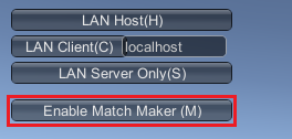 Build and run your project. The Network Manager HUD shows an in-game menu. Click Enable Match Maker.