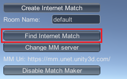 Run more instances of your project, and click Find Internet Match on these clients. Your room name should now appear.