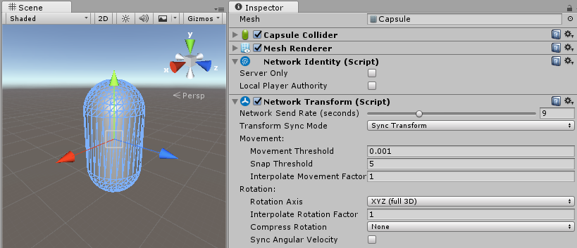 See in Glossary and NetworkTransformA Networking component that allows you to synchronise the movements of GameObjects across the network. More info