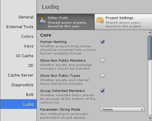 You can also open these panels directly from Tools > [Ludiq / Bolt] > [Editor Preferences / Project Settings]…