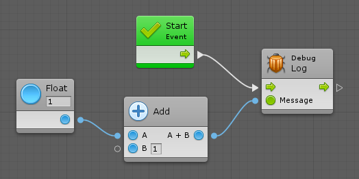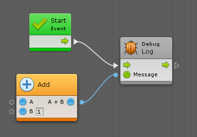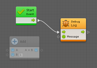 If you connect the result of A + B to Message, the Log node will go back to normal. However, the Add node will turn orange, because it’s missing its first operand, A.