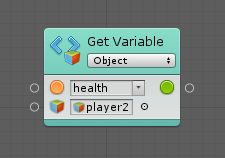 Object variable units require an additional input for the Source. That port indicates on which game object the variable you’re referring to is defined. When left at its default value, they will look on the current object (self).