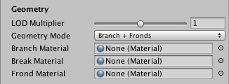 | Geometry Mode | Type of geometry for this branch group: Branch Only, Branch + Fronds, Fronds Only. |