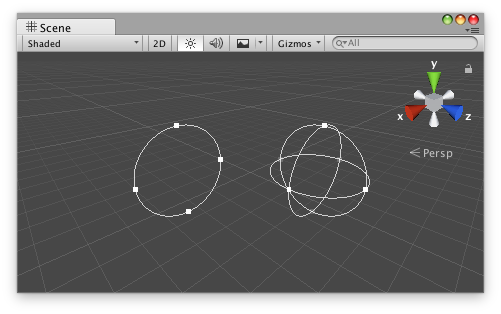 2D and 3D SphereBoundsHandle in the Scene View.