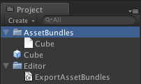 Assets folder (Project tab) More infoThe BuildAssetBundle function is the line that creates the AssetBundle and saves it to the specified location. The first parameter specifies the mainAsset, which is a special Asset that can be obtained directly with the mainAsset property when loading Assets from the AssetBundle. It is not mandatory to set a main Asset, if this is not going to be used you can use null for the parameter. The second parameter is the array of objects that will make up the AssetBundle. The third parameter is the location on disk that the AssetBundle will be saved to. The final parameters are the build flags or options used when building AssetBundles. These BuildAssetBundleOptions can be combined using the bitwise OR operator.