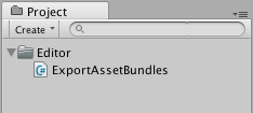 For the sake of this example, copy and paste the script from the link above into a new C# script called ExportAssetBundles. This script should be placed in a folder named Editor, so that it works inside the Unity Editor.