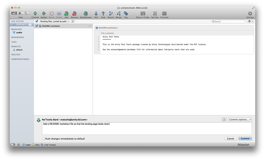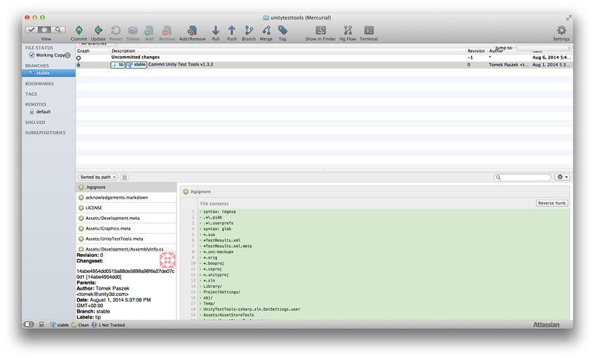 In our example, the Unity Test Tools repo is new and has only one commit on the stable branch. Here is an example of updating explicitly to that version: