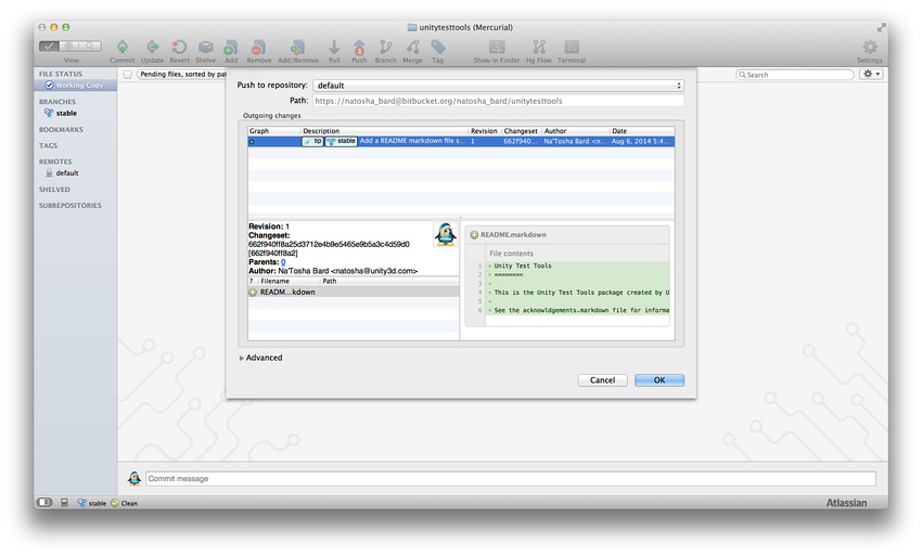 Next, push the changes. Your client will show you how many changesets you have waiting to be pushed: