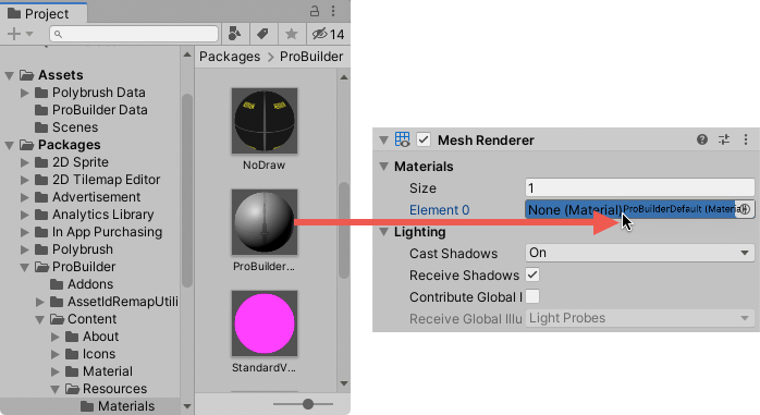 To assign a reference to a property, drag and drop a compatible GameObject or Asset onto the property field in the Inspector.
