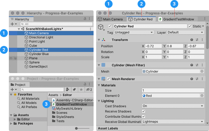 See in Glossary is a dedicated Inspector window for a specific GameObjectThe fundamental object in Unity scenes, which can represent characters, props, scenery, cameras, waypoints, and more. A GameObject’s functionality is defined by the Components attached to it. More info