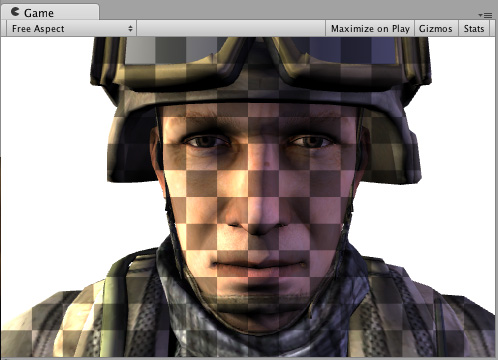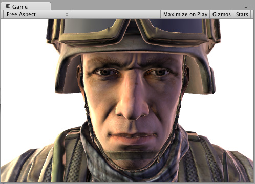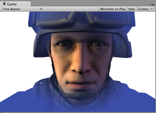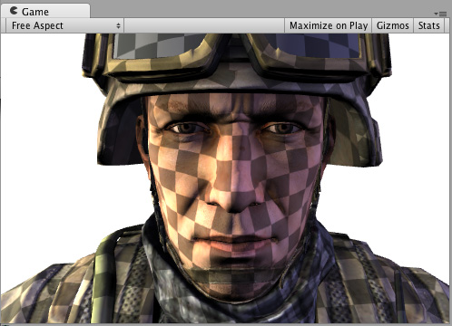 A Detail Texture in screen space does not make practical sense for a soldier head model, but here it is used to illustrate how a built-in screenPos input might be used: