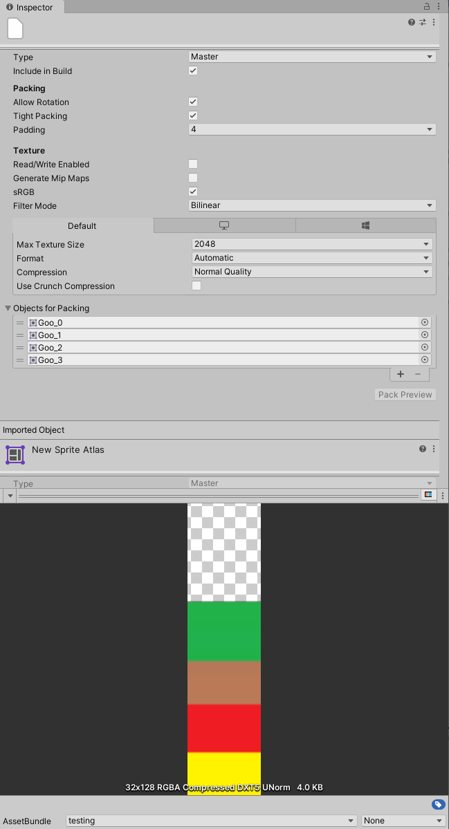 Setting the Sprite Packer Mode to Sprite Atlas V2 Experimental.