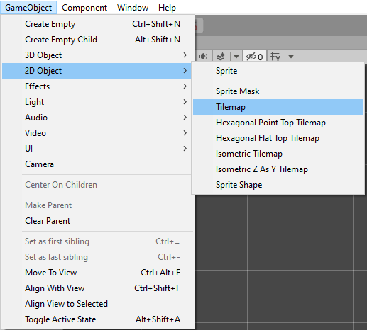 See in Glossary by going to GameObject > 2D Object > Tilemap. If you do not have these options, then the 2D Tilemap Editor package may not be installed. If so, download the 2D Tilemap Editor package from the Package Manager.