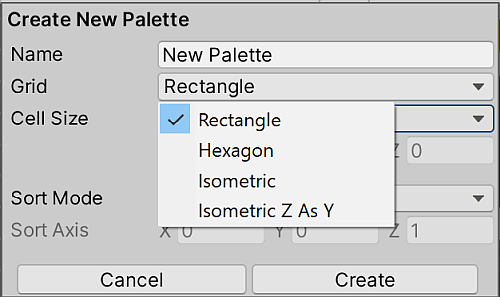 | Grid | Select the Grid layout the created Tile Palette will be used to paint on. |